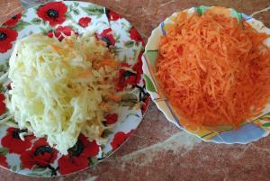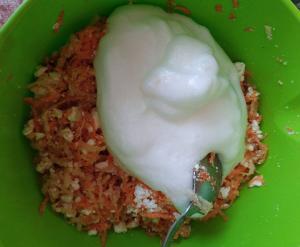 Моркву і яблука натерти на грубій тертці та перемішати.